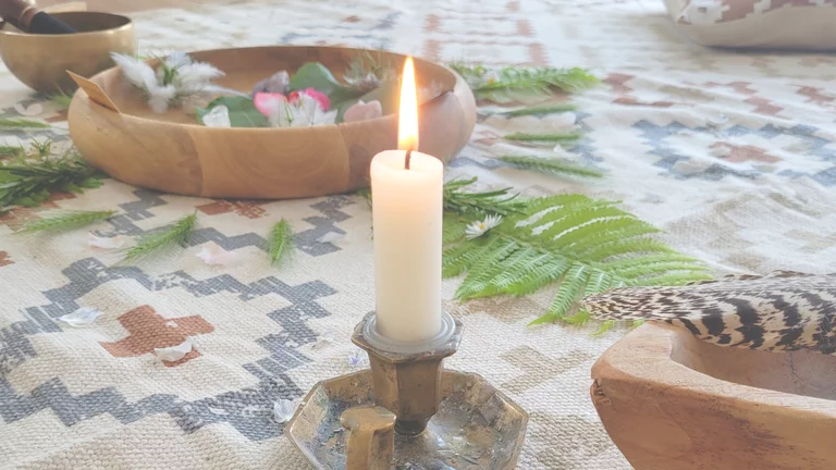 mit Blumen, Kerzen, Musik, Räucherwerk und einer feinen, klaren